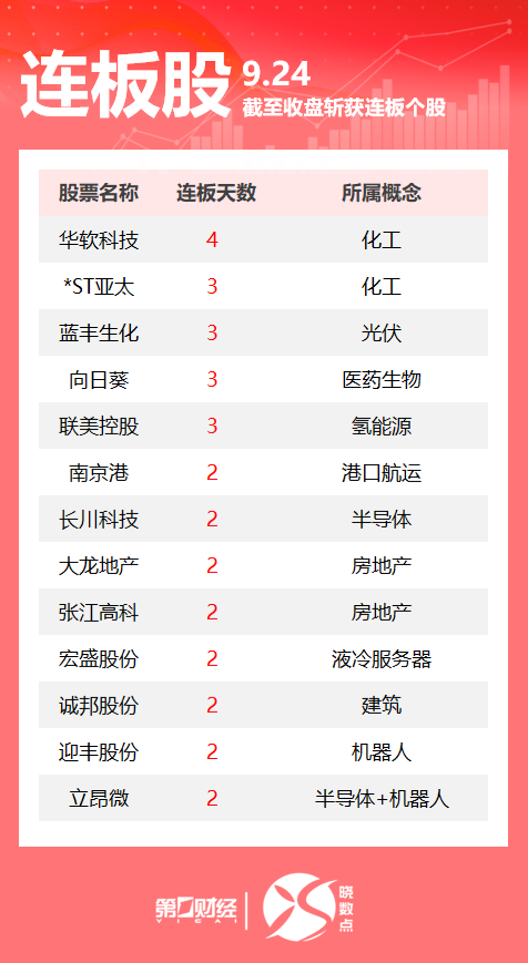 9月24日 ,Wind数据显示,A股市场共计88只个股涨停 。其中半导体板块长川科技 、立昂微2连板。一图速览今日连板股>>