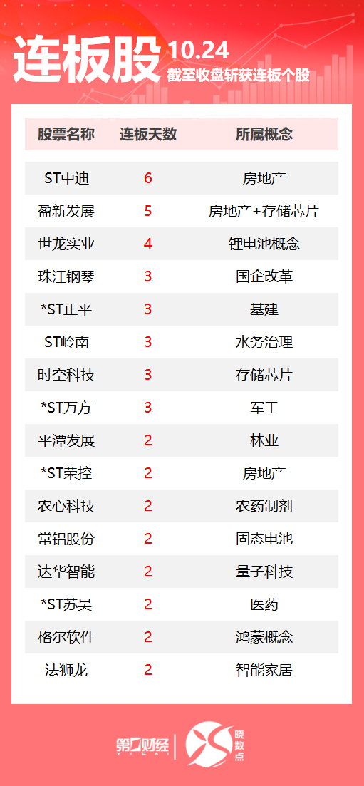 10月24日 ,Wind数据显示,A股市场共计72只个股涨停 。其中存储芯片板块盈新发展5连板、时空科技3连板,量子科技概念股达华智能2连板。一图速览今日连板股>>