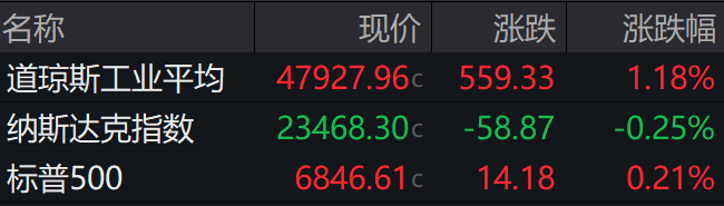 当地时间周二,美国股市涨跌不一 ,截至收盘,道指涨1.18%,标普500指数涨0.21% ,纳指跌0.25% 。